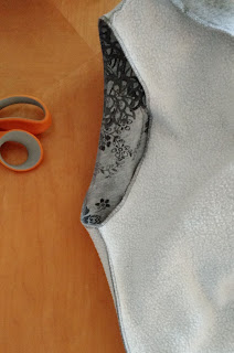 I decided I wanted a sleeveless hoodie, so I started by chopping off the arms. I saved those to use on another project some other time.