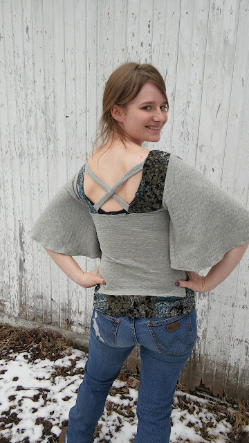 I cut up the shirt, using the the very top as a yoke for my new shirt, and the original hem as the hem for my new shirt.