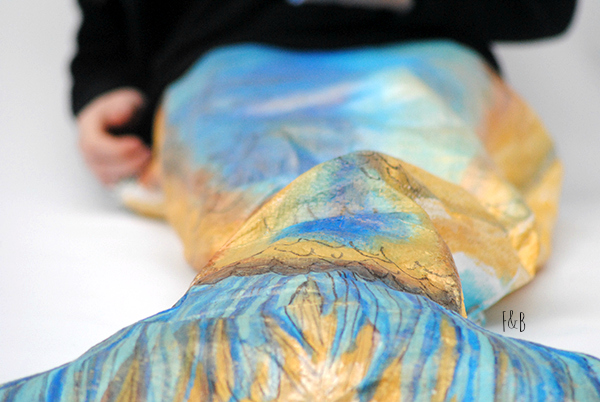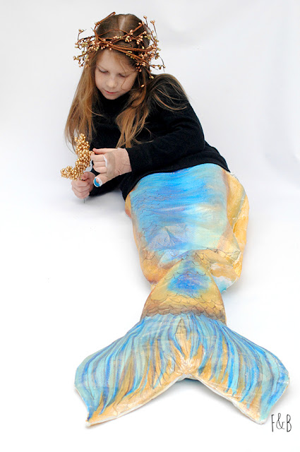 With my sewing machine and a little paint, I turned those bags into this mermaid tail!