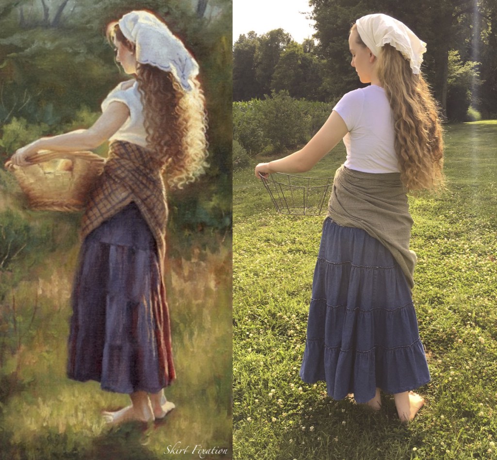 See it there around her waist? Please come over to Skirt Fixation for all the details on this art recreation and many more!