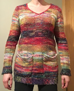 The end result… a cardigan sweater. I really loved the colors of this, but I’m not so sure it suits my style.