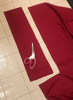 I cut out some red material and pressed them into strips.