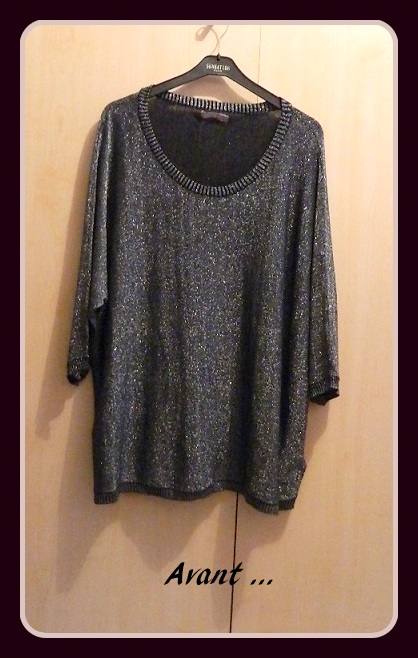 J'ai donc enlevé des centimètres en largeur, rajouté du jersey noir afin de rallonger les manches et conservé l'encolure.