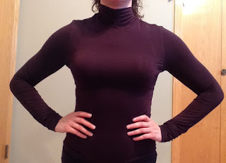 In my refashion pile was this super soft, long-sleeved turtleneck. I loved everything about this, aside from the neck. It is a nice earthy brown color, it has a fun sporty pattern around the arm holes, and did I mention the material was like wearing a fluffy cloud? It's fabulous. : )