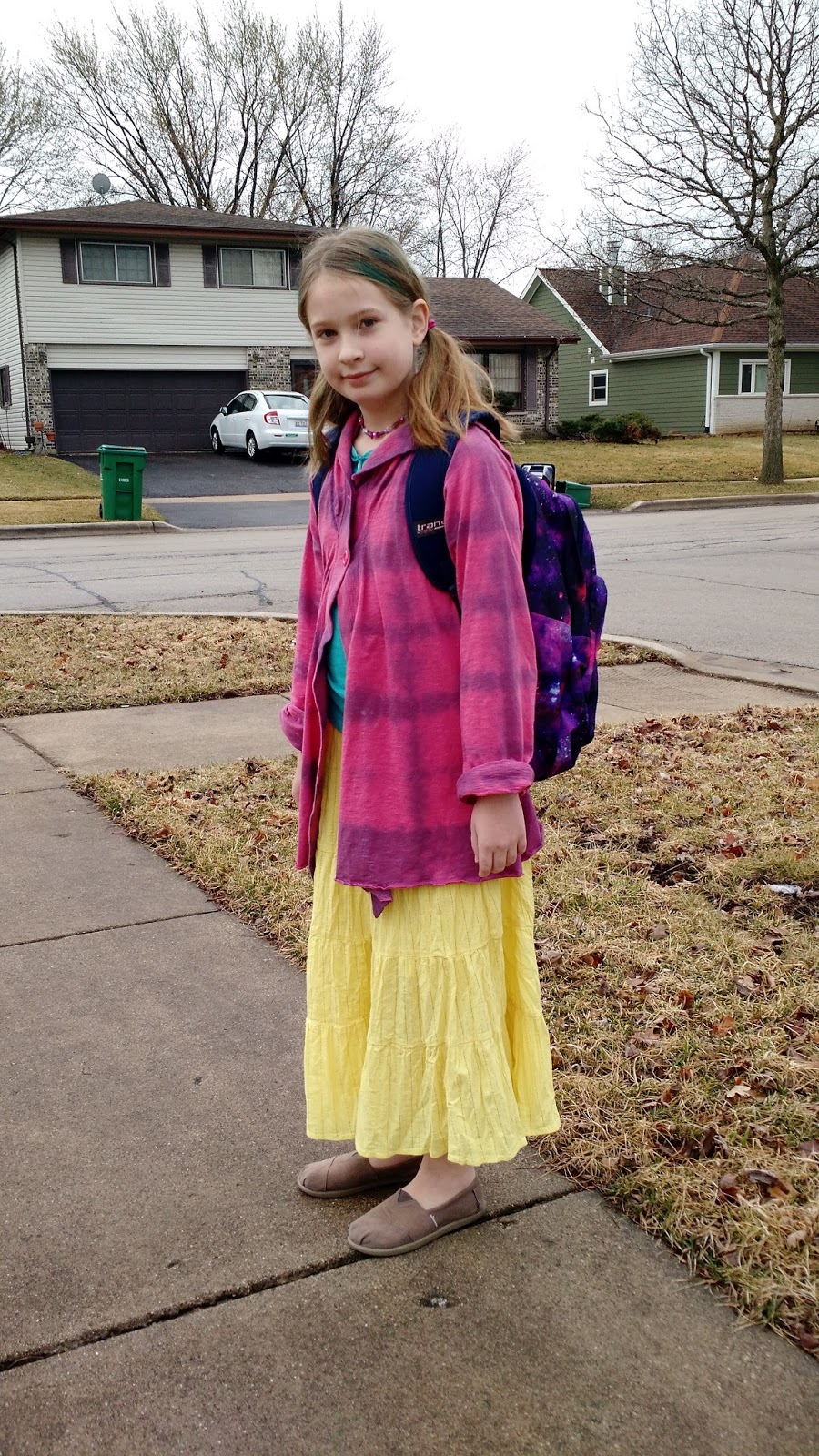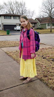 I found this maxidress at the thrift shop recently. I knew the top would be, let's say, immodest on me, but I loved the colors and the pattern. So of course, I bought it to refashion it.