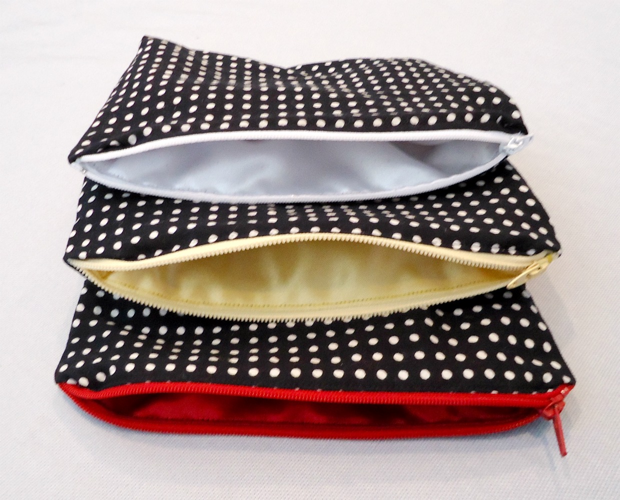 They're lovely! Polka dots make my eyes go funny sometimes, but in small doses like with these pouches they're great.