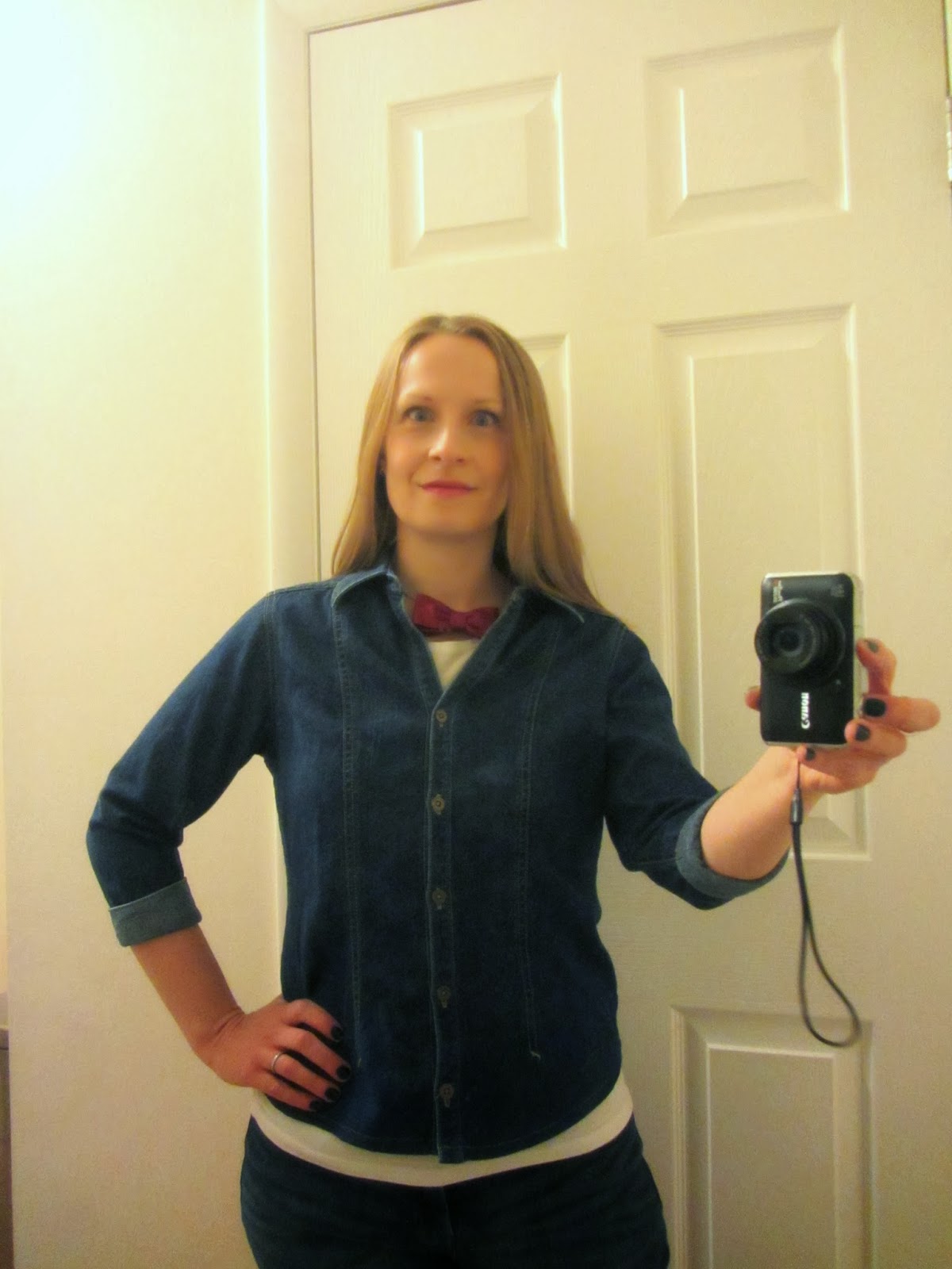 Again, it was a pretty simple, quick transformation, but it made this piece wearable. And if you like my bowtie necklace, that was another refashion. You can find the instructions here at Plan B with Anna Evers. Her posts are originally written in Spanish, and the translations can be rough, but Anna has some great refashion ideas. Check her out.