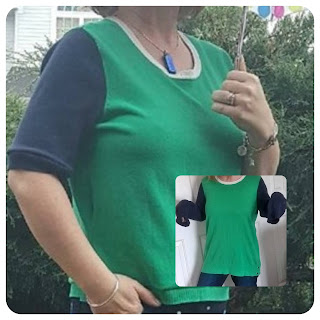 Hello Refashion Co-op. It is finally warm enough for Spring clothes. Yahoo! The sun is out and I don't need a coat. I had this blue and green sweater that I thought would be great for Spring.