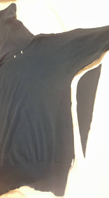 Hello Refashion Co-op. It is so cold out right now. All I want to wear are things that will keep me warm. Things like sweaters. I had this nice cozy blue sweater. It had very small arms and a very big body. They didn't seem to go together very well.